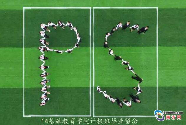 7班的刘如飞感慨:“四年同窗,毕业时才发现班级合照寥寥无几,于是大家想选择一个特别的方式来告别。”班长黄晓雯告诉记者,当初拍毕业照的摄影团队联系到她们时,班上同学很开心,痛快地答应下来了。班上同学见面第一句话是,“摆什么形状最好看?”大家选择了校园田径场和师道园的空旷地。
