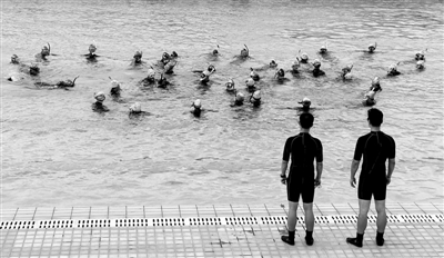 昨日,在岭师进行的潜水表演。 记者 李忠 通讯员 屈云摄