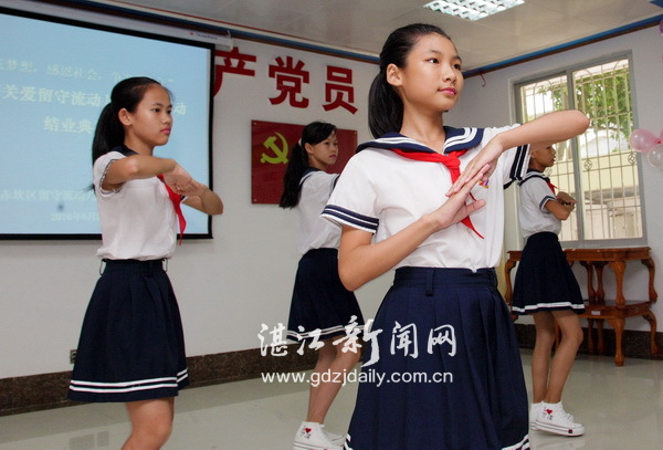 关爱留守流动儿童辅导班已经走过了两个学期,见证着许许多多中小学生的成长。在这学期里,每个周末,50名来自赤坎不同学校的留守、流动儿童聚集在这里,由来自岭南师范学院的80名大学生志愿者为孩子们提供免费学习、心理辅导。从此,这群留守、流动儿童的周末便有了好的去处,外出谋生的家长们也不用担心儿女们的学习和安全问题。