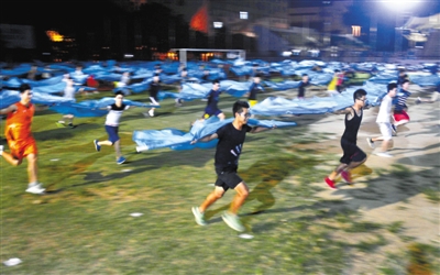 湛江日报6月25日讯 昨晚,岭南师范学院400余名扮演“浪花”的学生在该校新区田径场上排练省运会开幕式第二篇章舞蹈《丝路彩虹》。