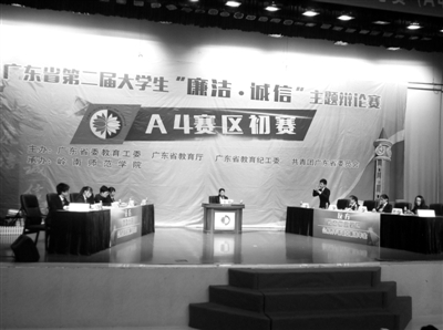 湛江晚报5月17日讯 经过从4月下旬开始的多轮赛事“唇枪舌剑”的激烈PK,5月15日上午,广东省第二届大学生“廉洁·诚信”主题辩论赛A4赛区初赛在岭南师范学院音乐厅全部结束。岭南师院队从A4赛区初赛中出线,获得参加复赛的入场券,成为晋级的湛江高校唯一代表。