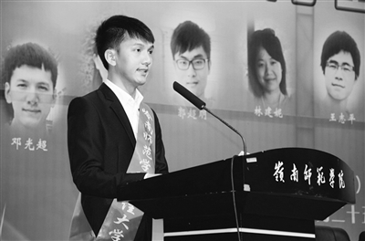 邓光超从小就喜欢音乐,刚刚走进岭南师院音乐学院的时候,他就暗暗下定决心,“憧憬了这么久的象牙塔,不是我享受玩乐的地方,应该是拼搏人生的又一新起点!”