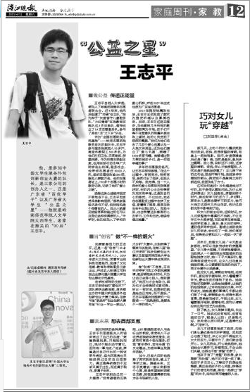 他,是参加中国大学生服务外包创新创业大赛的队长,是三家公司的创办人之一,还是广东省“百优学子”以及广东省大学生“公益之星”……他就是岭南师范学院人文学院大四学生,老家在韶关的“90后”王志平。