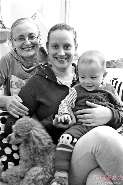 值得一提的是,卡佳在湛江还有了爱的结晶——她2014年2月在湛江中心人民医院生下了一个小男孩。小男孩的父亲,是湛江本地人。2015年春节期间,这位漂亮的宝宝就要满一周岁,“我的母亲也从白俄罗斯过来湛江,一起照顾我和孩子。母亲来这里之后,也马上喜欢上了湛江。湛江是一座美丽又有爱的城市!”