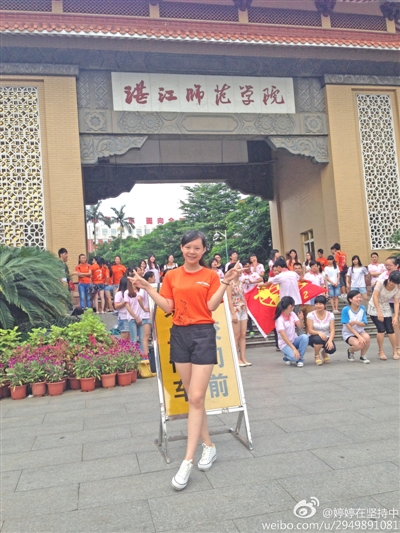 许多同学更关心的是如何留住自己青春的记忆,于是他们纷纷到湛师大门口合影。