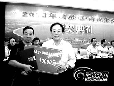 湛江日报10月31日讯 2013年度“诗探索奖”评选结果于10月27日海南揭晓,并在“世界长寿之乡”海南省澄迈县举行颁奖仪式,湛江师范学院教授、南方诗歌研究中心主任张德明荣获评论奖。著名诗评家、首都师范大学中国诗歌研究中心副主任吴思敬为获奖者颁奖。