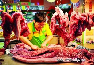 杨柏成热心向顾客介绍如何挑选瘦肉。