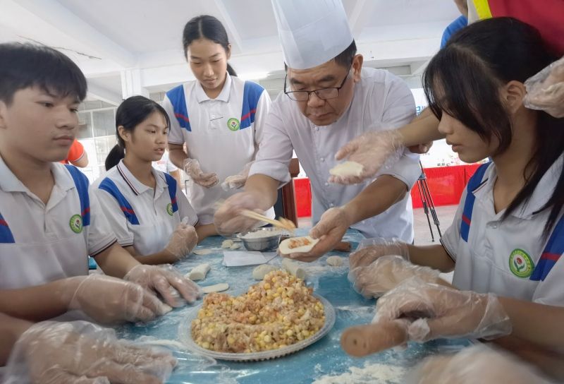 岭师烹饪专业师资团队和湛江市烹饪行业大师组成的食育专家团队通过送教下乡的方式,宣讲健康中国、大食物观等国家战略理念,共同探讨乡村学校食育课堂建设,赋能乡村振兴,助力“百千万工程”。