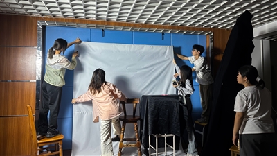 该推文生动写道:一间活动室、一张幕布、一把高脚凳、一部相机、一盏补光灯、一个柔光箱……最近,岭南师范学院的学生在学生公寓中心发起一场“光影·留痕”义拍活动,搭建起简易版的摄影棚,为工作10年以上的宿管人员,拍摄一张专属形象照。这是这群学生第一次接触棚拍,从布景、调光到试镜,每一步都要自学。直到开拍的前一晚,才拍出了第一张光感恰到好处的形象照。开拍时,每一位走进摄影棚的宿管,都被邀请到化妆区。为了保证形象照的精美度和还原度,负责化妆的学生决定用哑光淡妆的手法,为拍摄对象打底和修容。