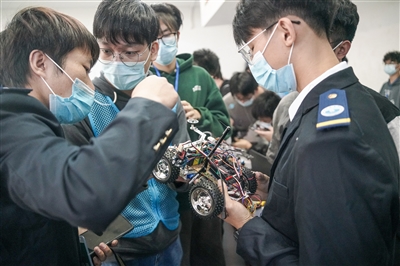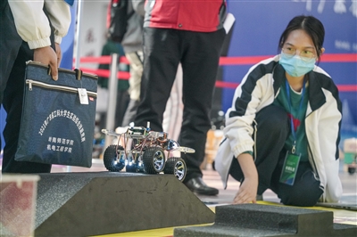 据悉,该赛事将机械、电子、计算机技术、信息技术等多种学科知识交叉并进行融合创新,往届竞赛中,一批批优秀的高技能人才从中脱颖而出,成为炙手可热的应用型和技能型人才。本次比赛在延续传统的基础上进行升级,通过智能终端配送机器人、3D设计与制作、全地形越障排爆小车等形式呈现比赛项目。现场,随处可见精密的终端配送机器人和全地形排爆小车,选手们紧张忙碌地调试设备。在大学生创新创业园,3D打印设计与制作竞赛同样气氛热烈,选手在工位上按要求进行零件的设计及3D打印,现场颇为壮观。