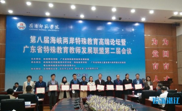 12月25日,第八届海峡两岸特殊教育高端论坛暨广东省特殊教育教师发展联盟第二届会议在岭南师范学院召开。来自海峡两岸的180多名专家学者以“新时代特殊教育的改革发展”为主题,通过“线上+线下”相结合的方式,分享两岸特殊教育的研究成果和实践智慧,探讨特殊教育高质量发展的发展大计。