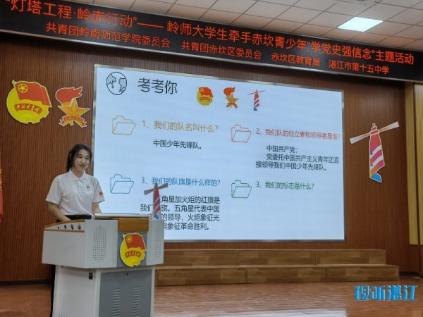 为更好地推动“学党史、强信念、跟党走”学习教育走深走实,引领广大青少年坚定赓续红色血脉、传承红色基因。11月8日,“灯塔工程·岭赤行动”岭师大学生牵手赤坎青少年“学党史强信念”主题活动正式启动。