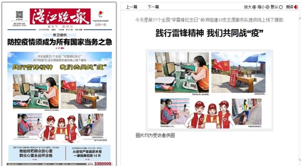 湛江晚报讯:今天是第57个全国“学雷锋纪念日”和第21个中国青年志愿者服务日。记者从驻湛高校了解到,岭师校团委日前出台了《岭师关于新型冠状肺炎疫情防控期间组织志愿服务工作的通知》,各二级学院积极响应参与,结合当地疫情需求,组建了岭南师范学院抗“疫”志愿服务突击队,为民众热心提供线上及线下援助。