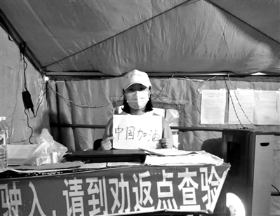 岭师大学生负责协助村中防疫登记及宣传工作。