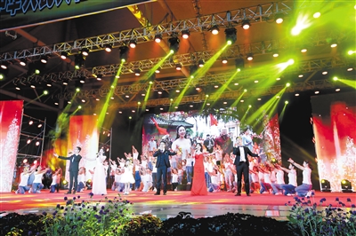 八千多名师生齐声高唱《歌唱祖国》,用歌声表达对祖国的祝福。晚会分为礼赞华诞、扎根筑梦、青春逐梦、奋进圆梦四个篇章。形式多样的情景剧舞蹈、乐器协奏、器乐合奏、武术、时装秀、歌舞、街舞、说唱等节目精彩纷呈,全国各地的校友还通过视频一起为祖国送上祝福。