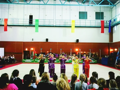 当地孩子们身着武术服装,手握刀枪剑棍,用标准的中国武术敬礼姿势,向我们表示欢迎和敬意。看着他们一招一式的动作,精气神十足的自信展示,我突然意识到——中国武术是世界的!在国际的传播中,它的内蕴精神已得到了世界的认可。