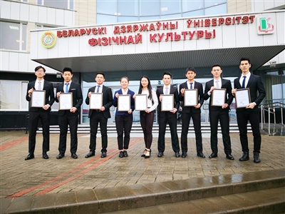 其中,来自岭南师范学院体育科学学院的王丽颖、陈浪、唐秋贤、邱广伟、雷汉杰、余嘉良、尤举梁、胡炳怡、任杰等9名留学生受到嘉奖,此次被白俄罗斯教育部授予“优秀中国留学生”称号,白俄罗斯国家教育部部长伊戈尔·瓦西里列维奇·卡尔边科为获奖留学生颁奖。
