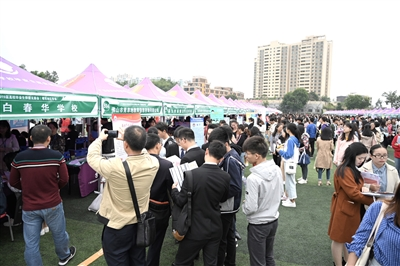 湛江晚报3月16日讯:16日9:00—17:00,由广东省教育厅主办,岭南师范学院承办的“广东省2019届高校毕业生供需见面会(粤西地区专场)”在岭师新区田径场火热举行。总共有来自全国各地的360多家用人单位进场招聘,为毕业生提供了13700多个工作岗位,吸引了来自湛江乃至粤西地区高校众多毕业生的踊跃参与。