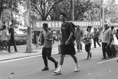 “我老家在韶关。我长得高可能是家族遗传的原因吧,我爷爷身高1米8,爸爸有1米76,妈妈有1米68。”赵子策告诉记者,因为长得高,进大学遇到的第一个问题就是宿舍的床太短了。学校很重视他反映的这个问题,“学生公寓现在已经有计划为我的床进行加长改造,很快我就能睡上舒服的床了。”但是军训服对于高个子的他来说,还是显得太小了,尽管他穿的军训服已经是最大码,但仍然无法让他在军训中完全舒适地伸展手脚。