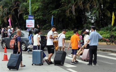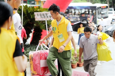 师姐师哥志愿者热情为新生服务,为新到学校报到的新生提行李。