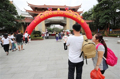 湛江晚报9月8日讯:今天一大早,2018年驻湛高校大一年级学生中的“大部队人马”——岭南师范学院的5600多名大一本科新生,陆续来校报到。