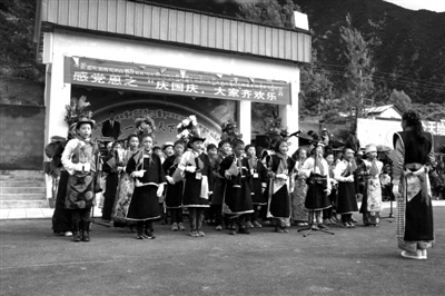在岭师支教志愿者的热心发动下,工布江达县小学的学生开展迎国庆活动。(资料图片)