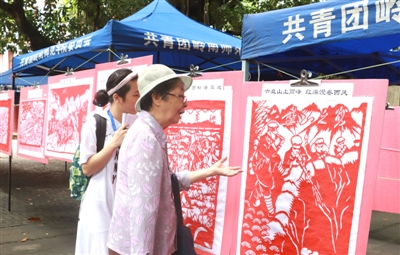 今年9月,在岭师校关工委、校团委等组织下,流芳文化团“丹心·汗青”刻剪纸艺术班的老师、学生们又举办主题活动。活动中,87岁的郑光华详细深入地介绍了刻剪纸这一中华民族传统艺术文化的形成和发展的过程,向大家展示了由学生自主设计的刻剪纸作品。
