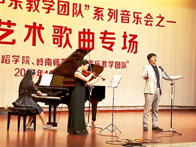 湛江晚报11月4号讯:近日,岭南师范学院音乐与舞蹈学院在校音乐厅举办了一场精彩纷呈的中国艺术歌曲专场音乐会。
