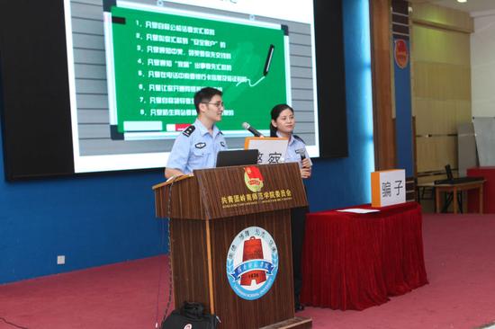 在反诈课堂上,学生们发现两名民警别出心裁地设计了一个小品讲起防范知识,不同于以往冷冰冰的授课,民警一个个像是段子高手。