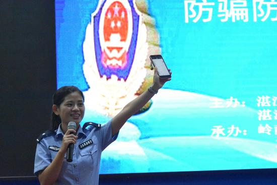 最后,湛江市反诈中心民警陈挺通过图文并茂的方式,深入浅出,活泼生动地给在座的学生讲解了防范电信诈骗的技巧。听完讲座,学生对记者感慨地说:“以前觉得诈骗离我们很遥远,现在知道在很多方面都应该提高警惕,不能再当‘傻白甜’了!”