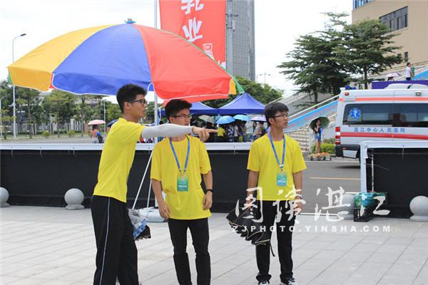 中午时分,志愿者们穿着整齐统一的服装,带着满腔的热情来到了湛江市体育中心,并密锣紧鼓地展开志愿服务工作。志愿者们从一楼仓库区搬运饮用水到观众席区域进行发放,将饮用水、节目单及充气棒整齐统一地摆放在每个观众席上,为观众欣赏闭幕式的精彩表演提供便利的服务。随后,志愿者们被分为车辆管理、门岗管理、文艺汇演、内场管理等10个小组分散到场馆内外进行服务工作,为闭幕式的顺利进行提供保障。烈日炎炎下,车辆管理的志愿者依旧坚守在自己的岗位上,引导车辆开往规定的停车区域。在场馆内,文艺汇演小组的志愿者也忙得焦头烂额。他们分散在4个表演入场口,催促节目表演人员入场,引导演员有序地退场,以保证表演入场通道的流畅。