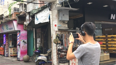 体验者在下载视频、戴上耳机后,可以跟随赵舒婷的脚步一起前往赤坎老街进行一场14多分钟的“漫游”,这种新颖的交互方式吸引了众多体验者。赵舒婷说:“我想让体验者结合自己及他人的视觉角度去深入观察老街,聆听老街的故事。”