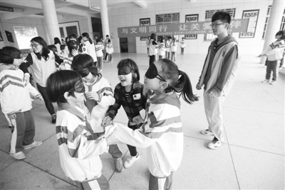 志愿者与孩子们一同玩游戏。 记者欧阳泽 摄