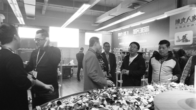 参加第二届“粤桂黔(广东、广西、贵州)名优农产品食品展示博览会”,谢富瑞(右二)向客商介绍陈皮人家。