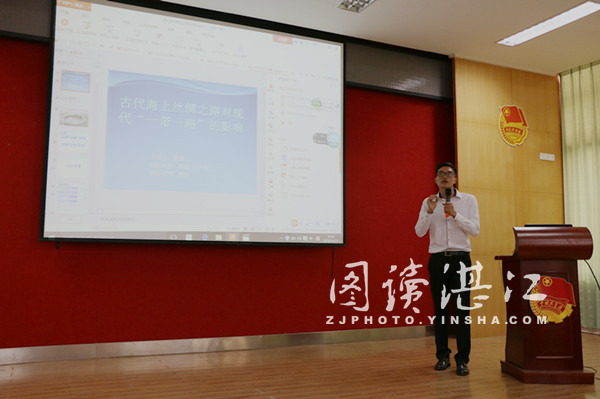 碧海银沙网12月12日讯:12月10日,来自14级工业设计的同学于鸿园411室顺利开展了古代海上丝绸之路对现代“一带一路”影响的专题学术报告会。本次报告会主要由陈强同学围绕“一带一路”的主题给大家讲述湛江徐闻的历代发展、现状及发展受阻所存在的问题和湛江在“一带一路”倡议下的发展前景。现场座无虚席。