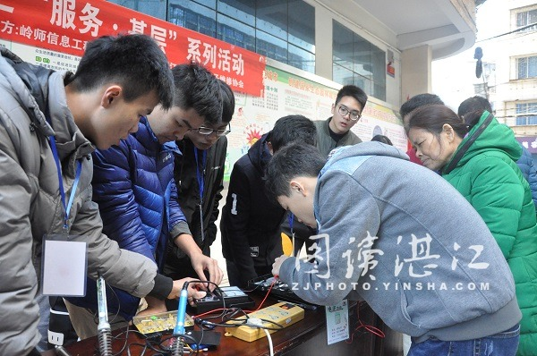 碧海银沙网11月29日讯:为深入基层建设,践行党的群众路线,体现“活力在基层”的活动精神,11月27日,信息工程学院在九二一社区开展电子义务维修及关爱空巢老人活动。参与活动的有信息工程学院的团委干部,电子协会成员以及九二一社区群众。
