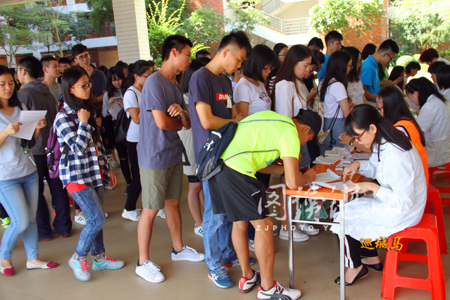 早上八点多钟开始,岭师的献血活动一开始,现场就排起了长龙。虽然这次献血活动市中心血站准备了5辆献血车,但挡不住大学生们的献血热情,现场早就挤满了人群。“我是大一新生,虽然刚踏入大学校园不久,但这是一件非常有意义的事情,作为大学生应该更多的去承担一些社会责任,参与到无偿献血。”刚上大一的陈同学是第一次献血,活动现场她献出200毫升的血。