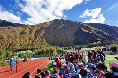 藏汉师生、家长一同参加活动。