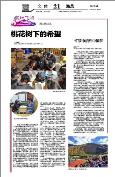 湛江晚报10月19日讯:今年既是少先队建队67周年也是红军长征胜利80周年。10月13日——在中国少年先锋队建队的纪念日这天,我支教的工布江达县仲莎乡中心小学举行了以“红领巾相约中国梦,听党的话做好少年”为主题的诗歌朗诵、红歌比拼活动。