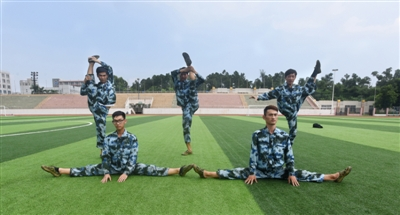 湛江晚报9月30日讯:9月26日下午,在岭师田径场内,音乐学院舞蹈班的新生军训在休息时欢声笑语不断,大秀舞艺,劈叉、空中一字马等舞蹈动作惊艳全场,迎来了阵阵喝彩。该校一名大三的学生看了表演后惊呼:“这是音乐学院舞蹈班独有的军训啊!太唯美了!”
