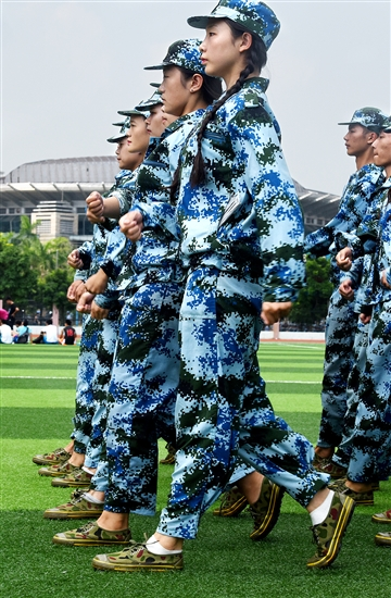 “大学和高中的军训很不一样,这很严格。”音乐学院的大三学生表示大学的军训很严格,但是也很充实。他们白天军训,晚上排练,都为着同一个目标而努力。作为艺术生,这些舞蹈班的学生给枯燥的军训生活添加一抹青春的灵动,用舞者的绚丽色彩展现了当代大学生别样的军训生活,在跳跃中体现当代大学生奋发向上的昂扬精神风貌。同时,他们也体现了扎实的专业功底、良好的文化素养和当仁不让的颜值担当。