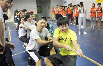 拔河比赛上,台湾、湛江大学生奋力拼搏。
