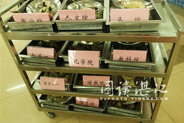 碧海银沙网6月5日讯:6月5日,在细雨绵绵的下午,“浓情端午,粽享未来“2016年岭南师范学院端午节教职工包粽子比赛在鸿园二楼火热开展。