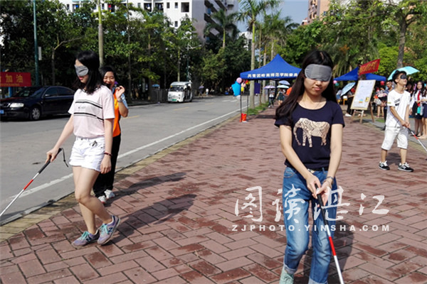 碧海银沙网5月22日讯 5月21日,在全国第26个助残日之际,岭南师范学院青志联爱心社举行了以”你我牵手,扶残助残“为主题的全国助残志愿活动。此次活动是在体育馆大运石举行,活动形式有风采展、体验盲人游戏、爱心募捐、清扫盲道、心愿墙等,据统计,共有32名志愿者参加了此次活动。