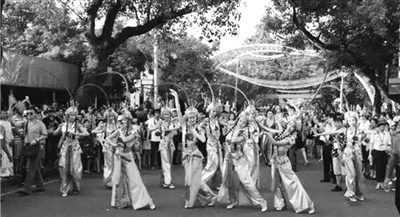更有趣的是,在第九届越南顺化国际艺术节一个晚宴上,来自俄罗斯、匈牙利、日本、韩国等国的艺术团成员和她们一起放声欢唱,兴致一来便上台跳起本民族的歌舞。“那晚大家都很尽兴,就像多年的好友那样聊天、玩乐,”文静说。热情的俄罗斯姑娘还把几个可爱的俄罗斯套娃当作礼物送给了她们。