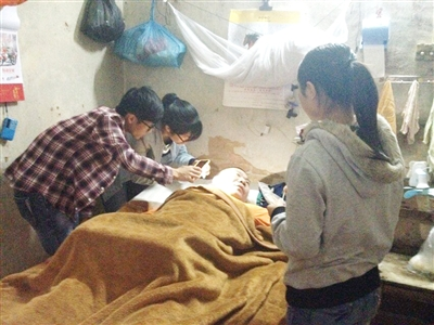 3 月31日,记者和大学生志愿者来到陈伟雄居住的简陋小屋,他正卧在病床上,身子盖着一层厚厚的被子,左右两只手靠着双臂甩动的力量,一敲一拖地运用部首输入法在更新着自己的微博,内容写的是:感谢岭师的学生上次来看我,帮我打扫了房间、修剪了指甲,真的很谢谢他们一直那么关心我。