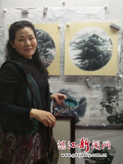 这位生于浙江绍兴,生活、求学于东北,在湛江工作十几年的女教授,性情豪迈,不拘小节,她知道中国画以气势神韵见长,这更契合男性的特点,却反其道而行,读大学时选择专攻国画山水,因为迷恋山水画方寸见万里的气度,要用笔墨构造一个属于自己的“乌托邦”。多元文化的交融给了她一个开阔的情怀,画面呈现的既有北派山水的雄奇豪迈,也有南派山水的灵秀温润。在她的画展上,一位书法家为她赠书 “长天开画卷,安屐踏金声”,是对她作品的最佳评价。
