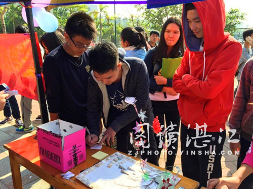 在整个活动过程中,为了更好吸引同学们的参与,义工服务队开展了众多的活动,例如海报留言,横幅签名,猜环保题等。特别地,在活动过程中,物理学院辅导员梁碧斐老师也亲临活动现场,给同学们做指导。