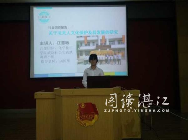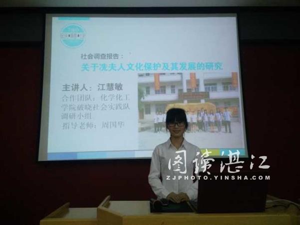 碧海银沙网12月7日讯 弘扬学术,激励创新。由校团委举办的第352场、353场学生学术报告会于12月5日在鸿园四楼学生学术报告厅如期举行,来自人文院14中本3班陈晓文同学和化学院14化本2班的江慧敏同学分别作了题为《民间叙事中的文化价值建构与传承——以雷州石狗崇拜文化为例》和《关于冼夫人文化保护及其发展的研究》的学生学术报告。