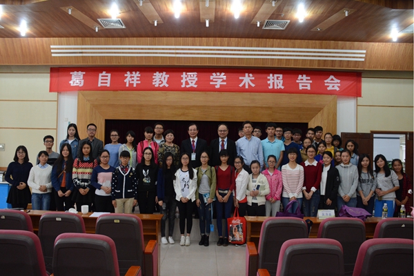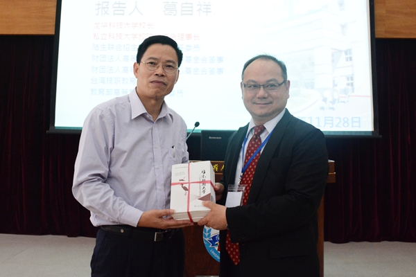 值第五届海峡两岸教师教育高端论坛举办期间,11月28日下午,台湾龙华科技大学校长、私立科技大学校院协进会理事长葛自祥教授应岭南师范学院邀请,在岭南师范学院图书馆主讲专题报告《台湾应用型科技大学之卓越发展与经营实践——以龙华科技大学为例》。台湾教育大学系统总校长、台湾师范教育学会理事长吴清基教授,学校罗海鸥院长、邵乐喜副院长等领导参加了报告会。报告会由邵乐喜副院长主持。